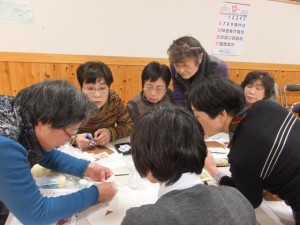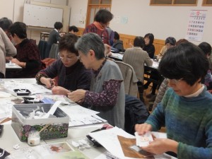 講師は諌元正枝さん。作業の指導をするには受講生の人数が多いので、諌元さんが8名の補助スタッフの方を連れて来てくださいました。