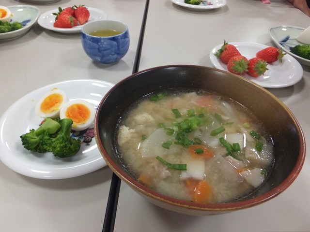 いりこだし具だくさん野菜で「うま味」たっぷりの美味しいだんご汁が完成しました。