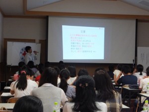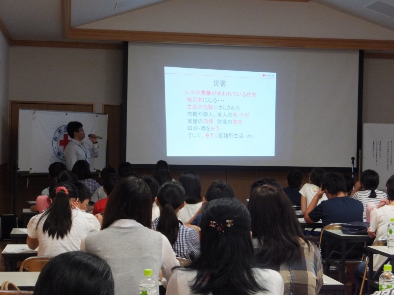 日本赤十字社大分県支部の方より、赤十字社の成り立ち、災害救護活動について、パワーポイントとDVDを使って説明がありました。