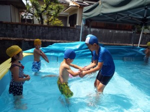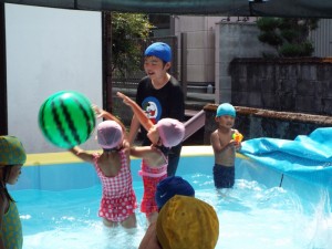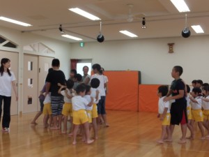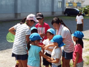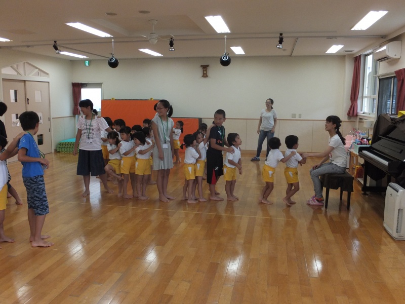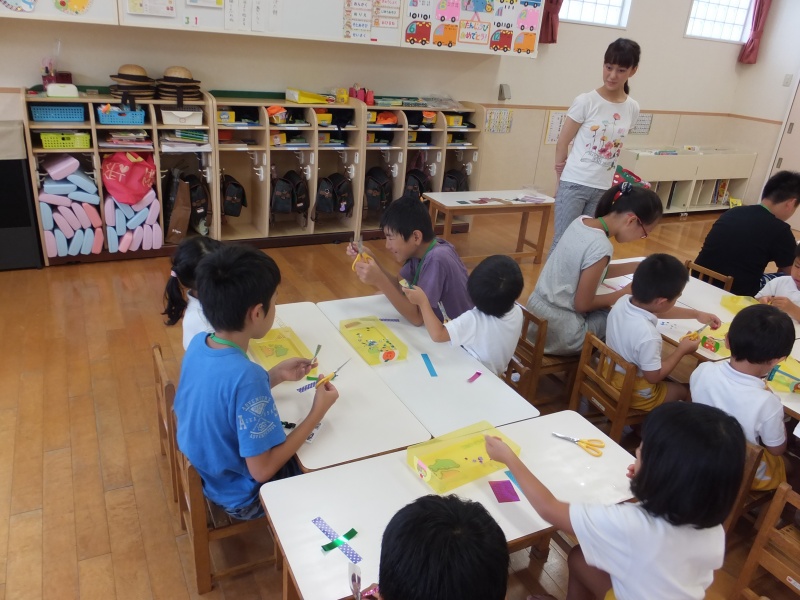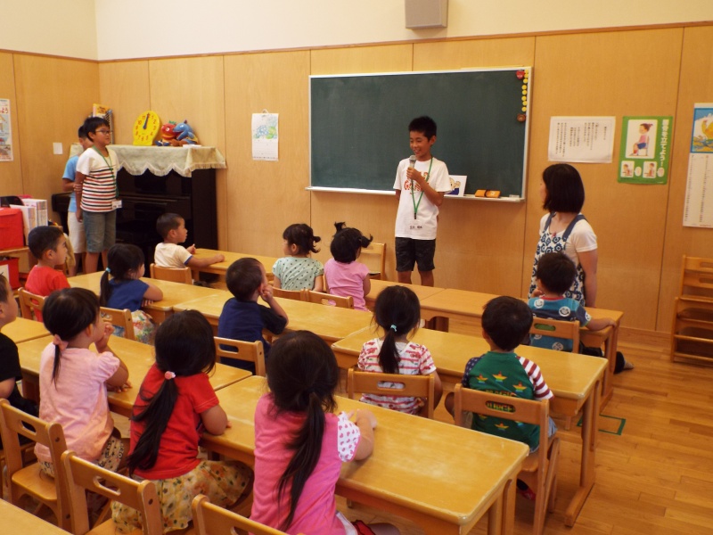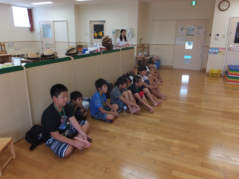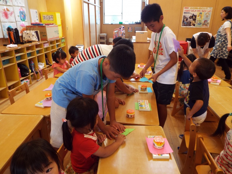 8月3日は、「保育士体験」活動を行い、2班に分かれて、田島1丁目の「ひかり保育園」さんと、田島本町の「ひまわり認定こども園」さんにお世話になりました。