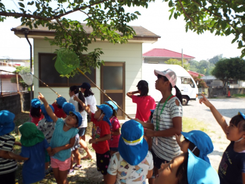 5歳児は東部中学校付近の木に、蝉取りに行きました。