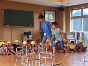 次に、徒競走の練習で、お兄さんが園児に見本を見せました。