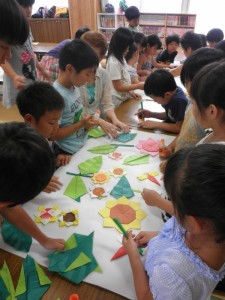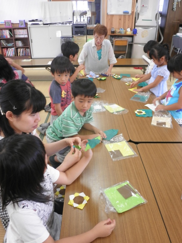 この折紙教室は咸宜公民館共催で、夏休み期間中の創作活動として開催しています。