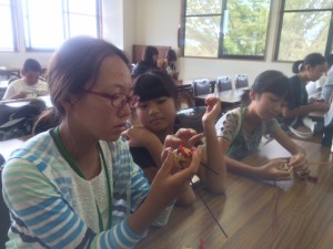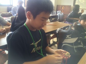 体験学習として「竹ひご」を編んで作る「竹鈴作りにも挑戦しました。
