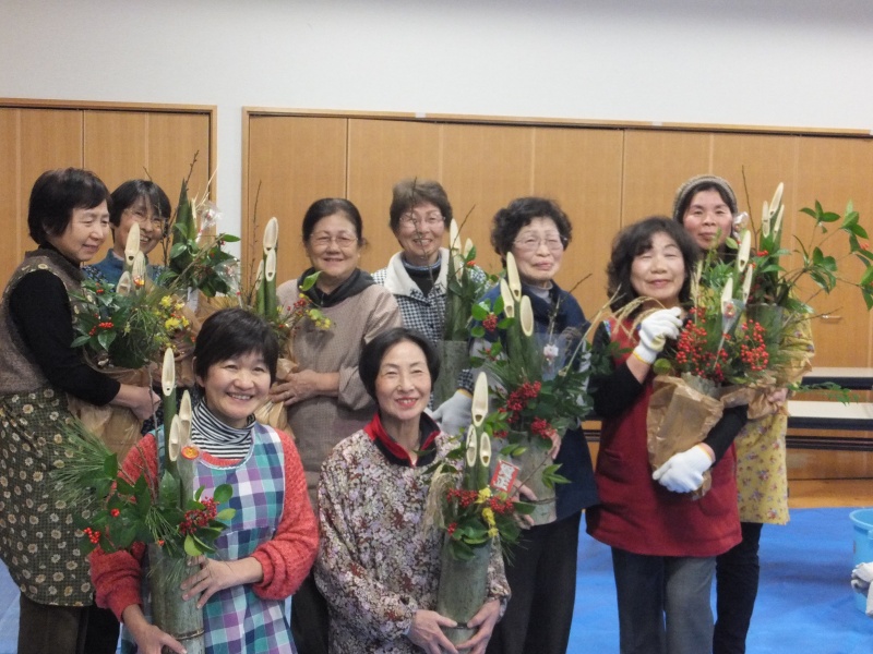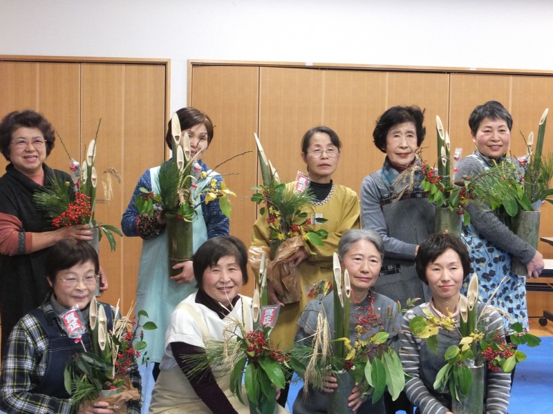 参加者28名、全員がそれぞれ違う個性あるミニ門松が完成しました!