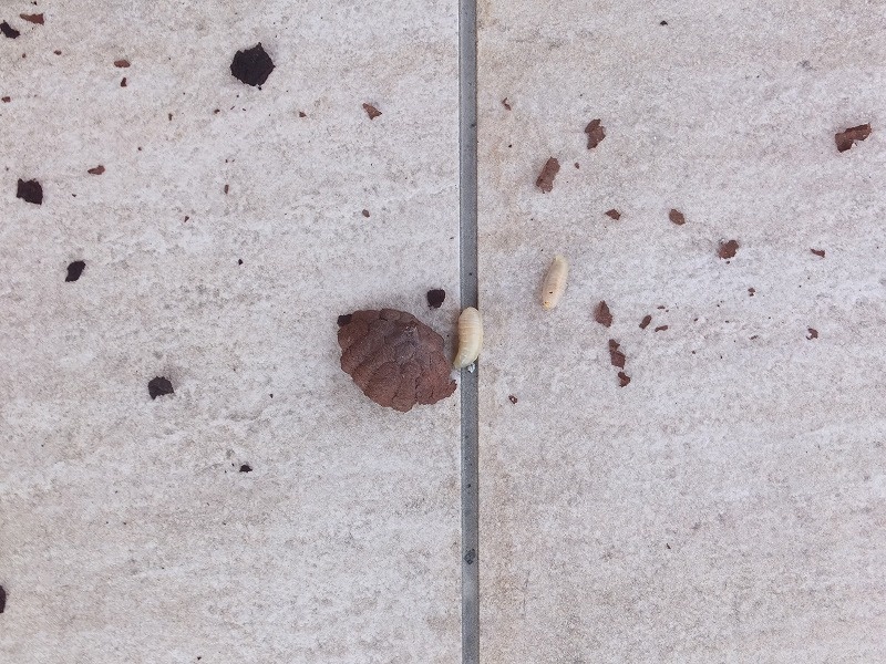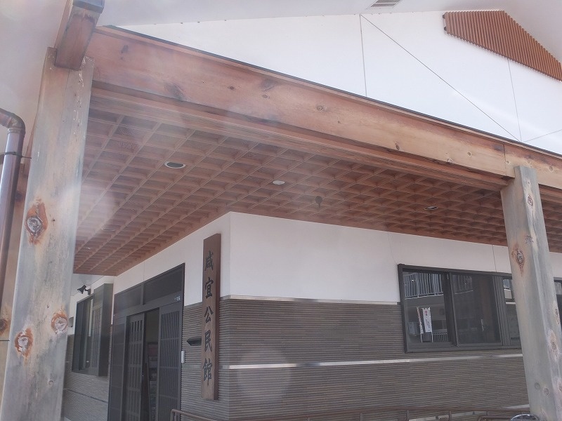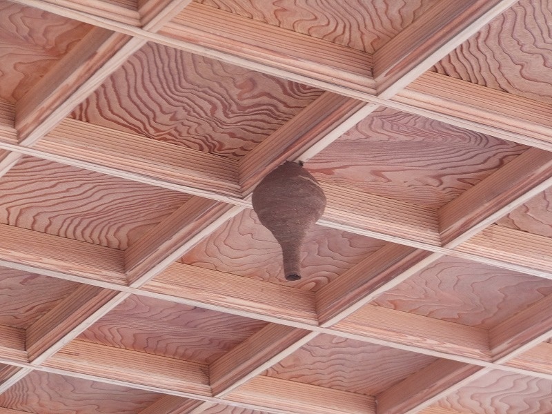 公民館玄関先の天井にスズメバチが巣を作っていました。