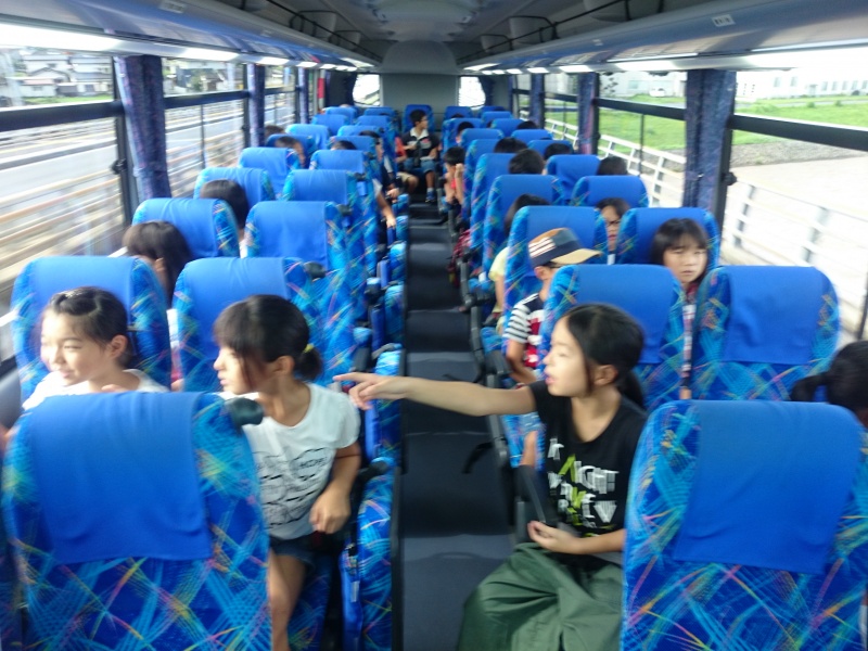 黒髪少年自然の家への2泊3日のキャンプ、出発しました。バスの中はにぎやかです。3日間、良い天気になってほしいです❗