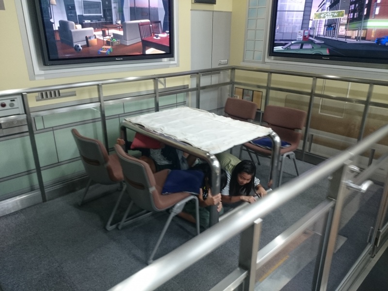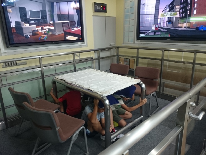 本日最後の研修場所、防災センターに着きました。まずは震度6強を体験しました。