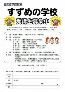 認知症予防講座 すずめの学校、受講生募集中