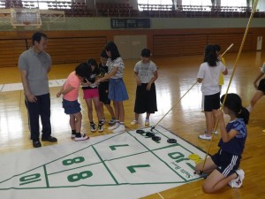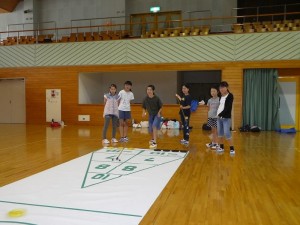 日田市総合体育館で開講式&軽スポーツを実施しました。