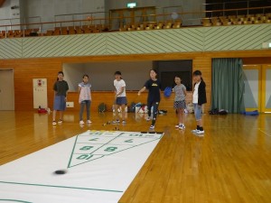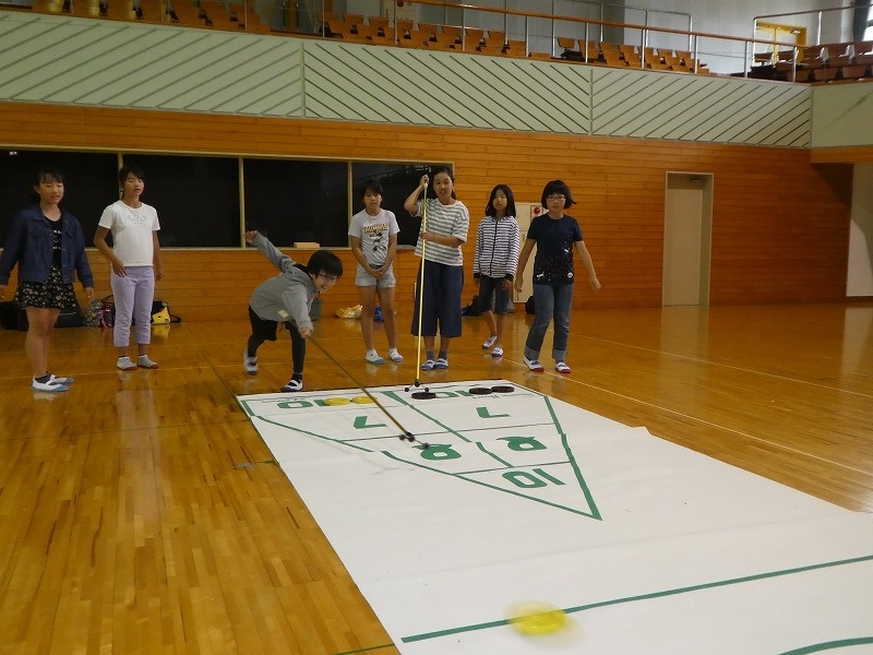 軽スポーツでは、シャッフルボードに挑戦しました。