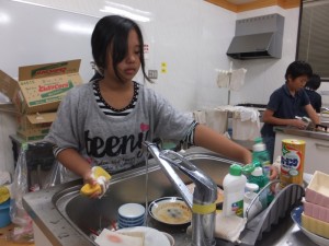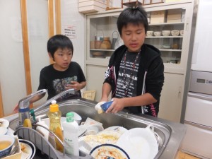 食後は片付け係が片付けを行います。