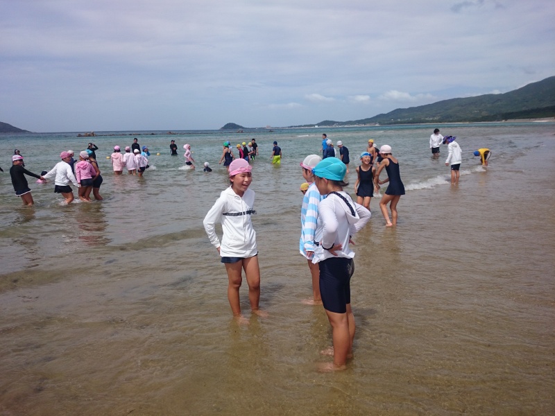 台風の影響で心配していた海水浴ですが、無事に実施できています❗