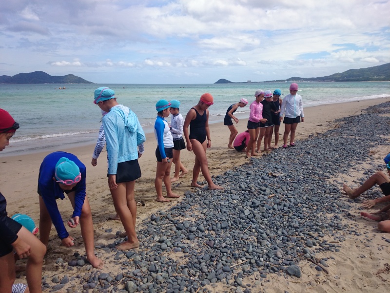 海水浴の休憩時間に、ストーンアートに使う石を探しました。