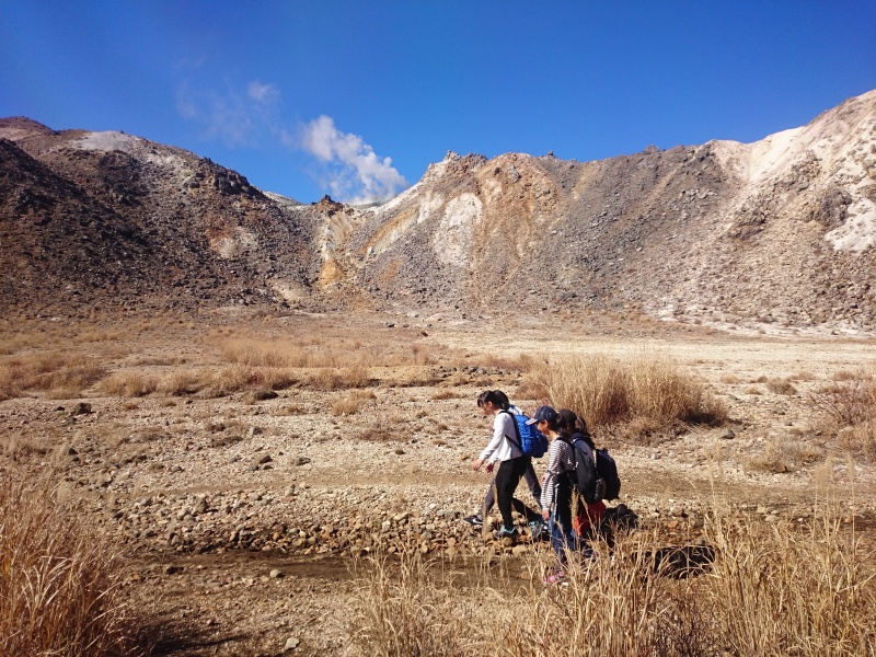 咸宜っ子 くじゅう登山 煙噴き出す硫黄山