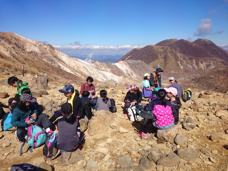 咸宜っ子 くじゅう登山 煙噴き出す硫黄山