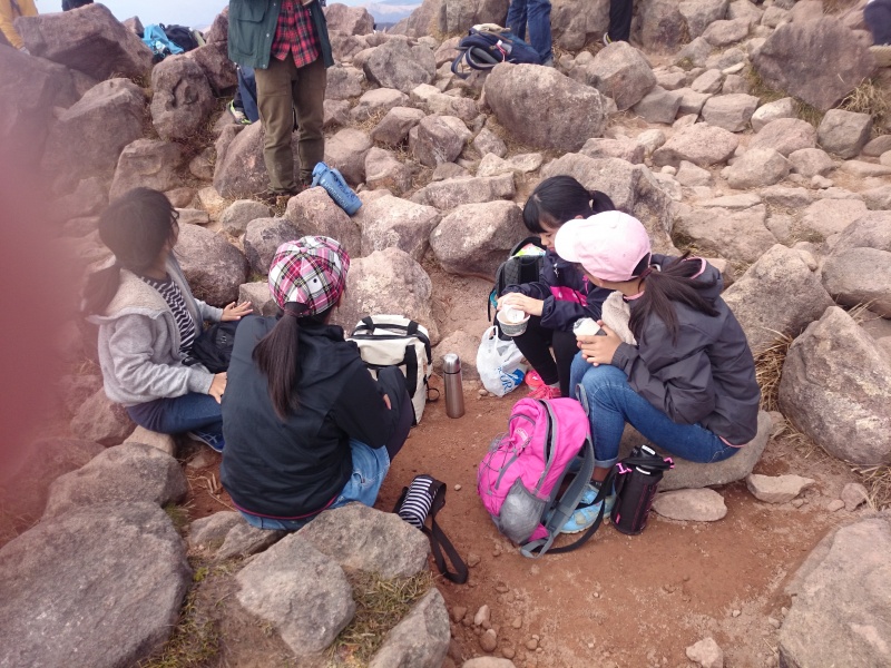 咸宜っ子 くじゅう登山 久住別れで休憩(帰り)