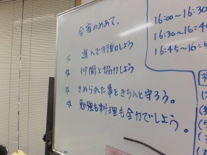 30日(3日目)の放課後3時に子ども達が帰館。宿題をした後、4時から通学合宿のふりかえりを行いました。