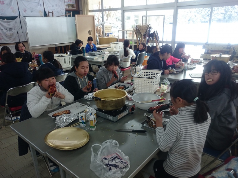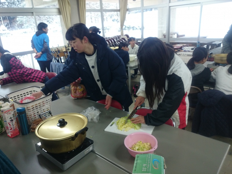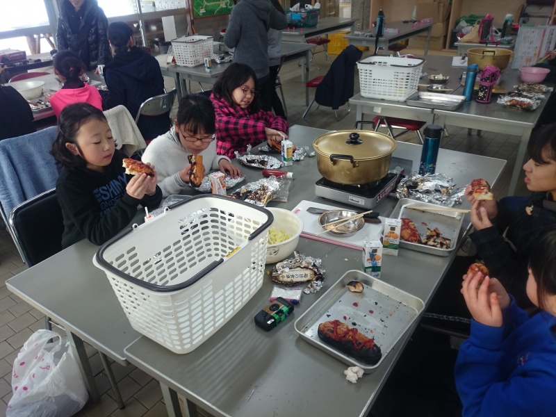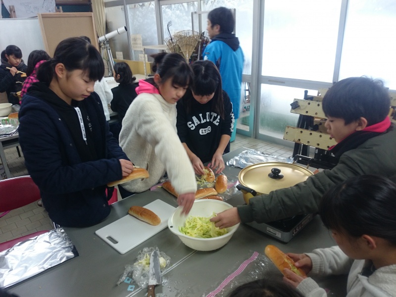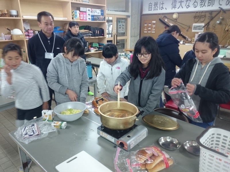 咸宜っ子 冬山宿泊研修 朝食(ホットドッグ作り)