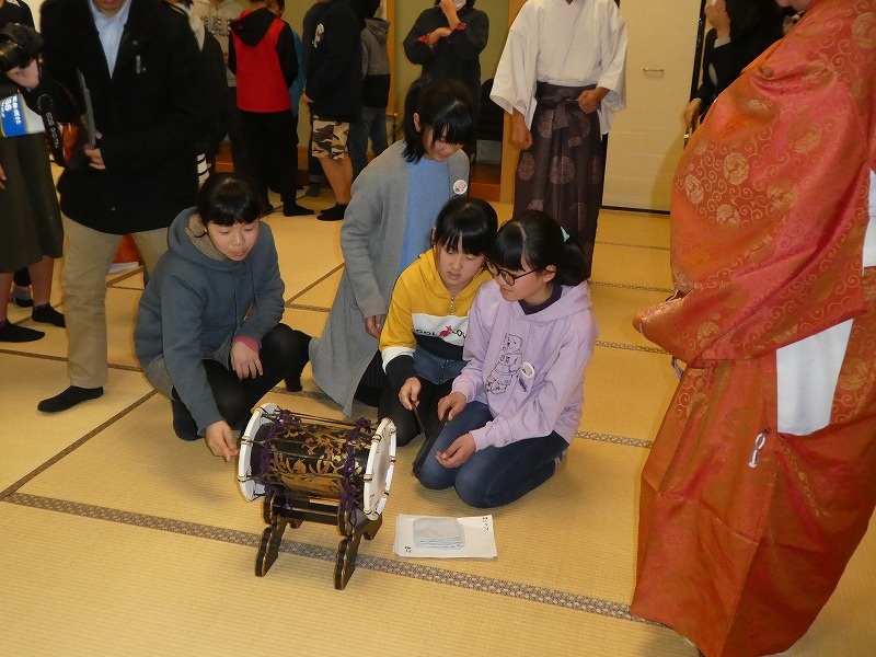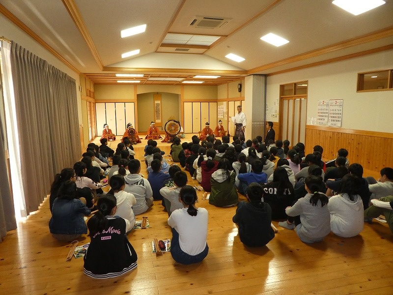 学習内容は、小学校の授業の中で事前に勉強していた雅楽に関する知識を踏まえながら、