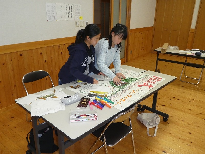 話し合いがまとまったら、模造紙を使って発表資料を作りました。