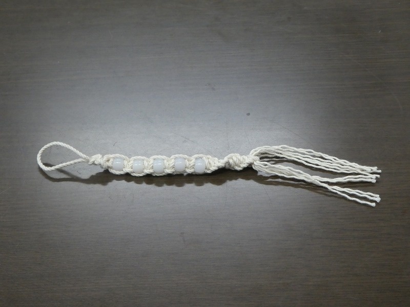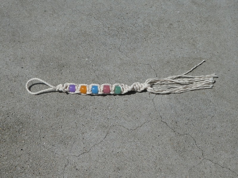 最後に、紫外線チェックビーズを使ってストラップを作り。