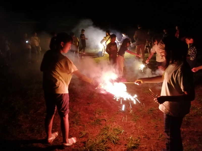 咸宜っ子体験教室 サマーキャンプ 花火を落として…