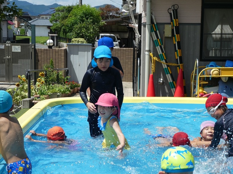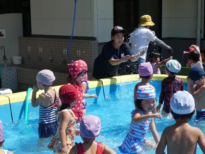 プール遊びのお世話や運動会の練習など、いろんなことに挑戦しました。