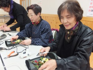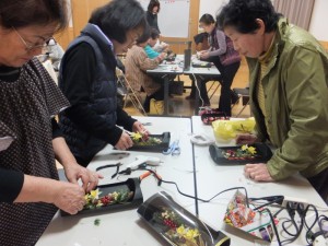受講生22名は、講師のご指導により、それぞれのセンスを活かした飾りを作りました。