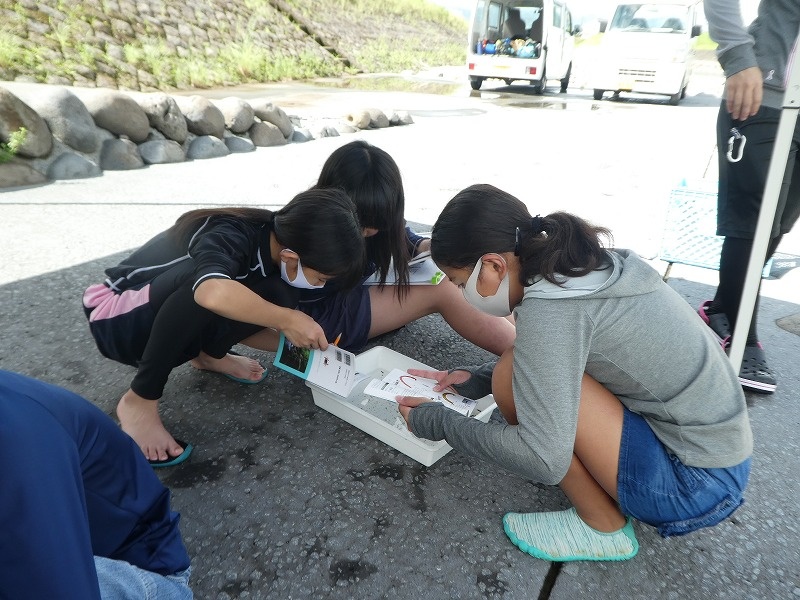生き物が集まったら、図鑑で生き物の名前を調べました。
