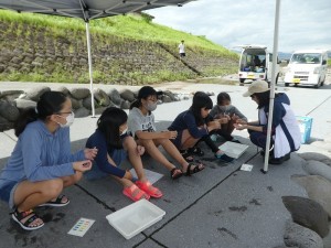 講師には日田市環境課の方に来ていただき、花月川の調査を行いました。