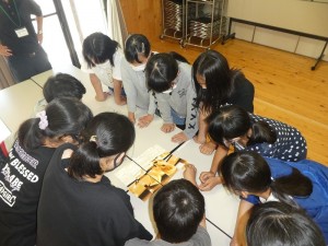 自分のピースを説明だけで相手に伝えて、裏向きにパズルを作っていきました。