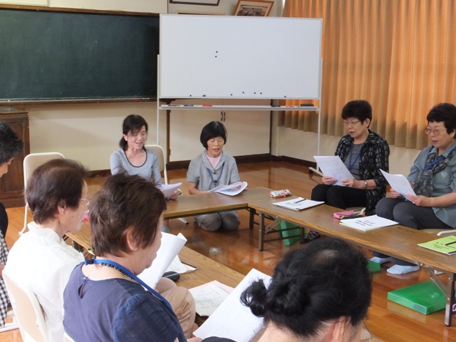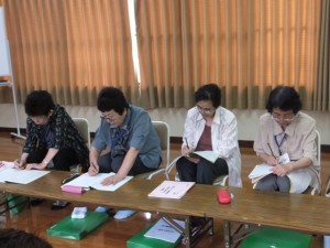 音読&漢字かきとりタイム。皆さん正解しましたか? 最後は座談会。季節がら「梅漬け」のはなしで盛り上がりました。
