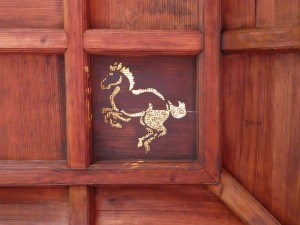 子(ね)・卯(う)・午(うま)・酉(とり)の四干支の彫絵が存在しています。