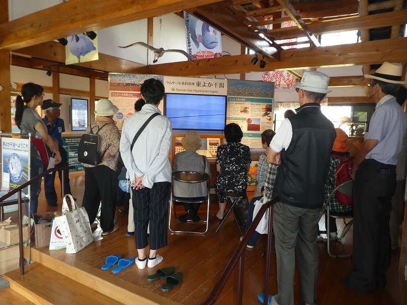 大型モニターによる東よか干潟のプロモーション映像を観て、