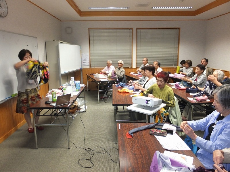 また、防災グッズの作り方として、風呂敷の活用術を実技で習いました。