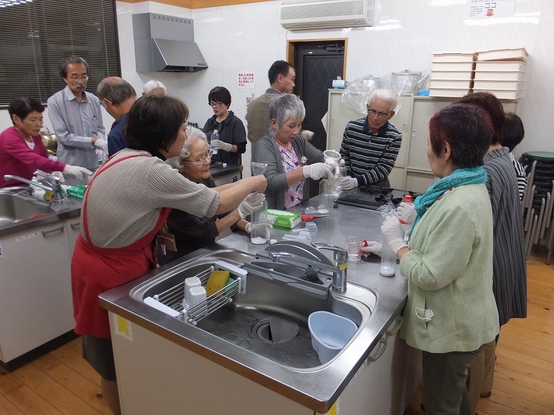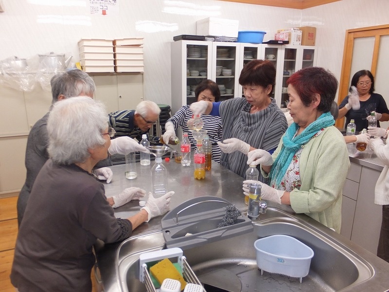 まだ固まっていないペットボトルせっけんを振りながら受講しました。