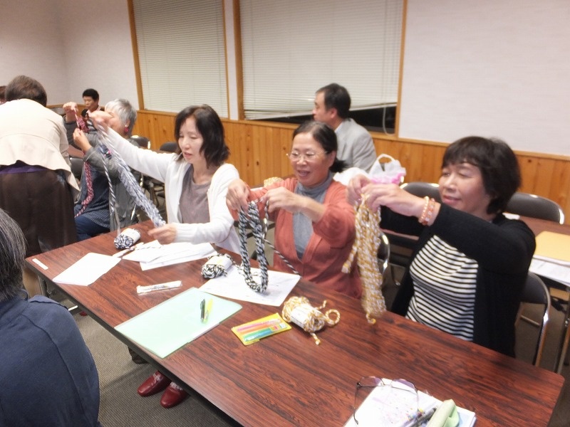 最初こそ難しかったのですが、コツをつかんでからは皆さん上手に編んでいました。