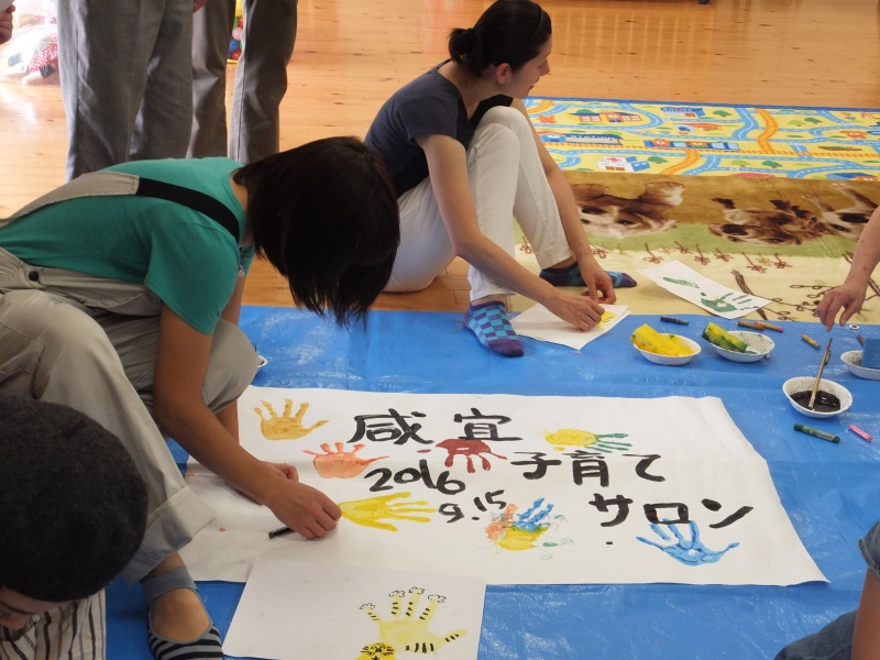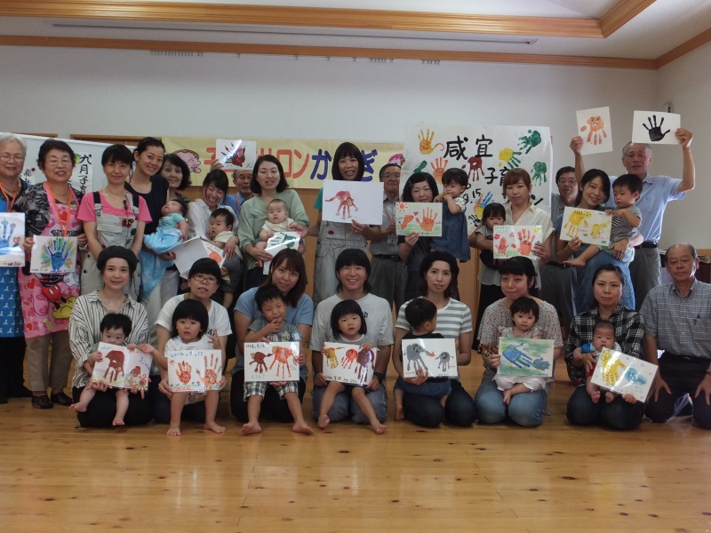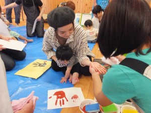 9月15日、子育てサロンは、絵本読み聞かせグループ「エホント」さんによる「手のひらワークショップ」を行いました。