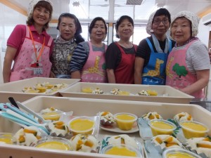 民生委員さん、福祉委員さんによるおやつ、今回はかぼちゃプリンとかぼちゃ蒸しパンです。