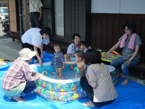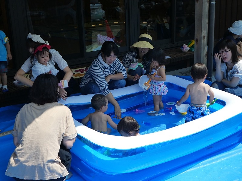 ちびっ子達がプールで水遊び ~子育てサロン~