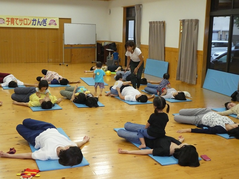 親子で夏バテさようなら 子育てサロンでヨガ体験