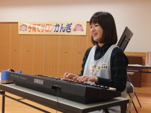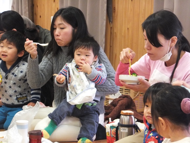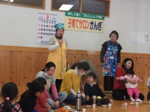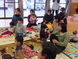 1月15日、咸宜公民館の子育てサロンが開催され、寒い中幼いお子さんを連れたお母さん方が参加しました。
