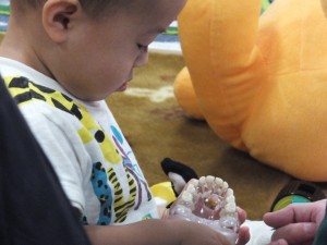 絵本に興味深々のちびっこたち。 お母さんのための絵本セラピーの時間です。
