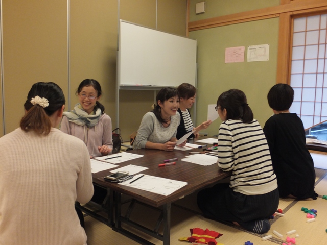 講座の後半は、お母さんたちだけに別室に集まってもらい、「お母さんの絵本セラピー」を行いました。