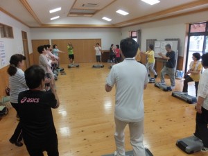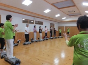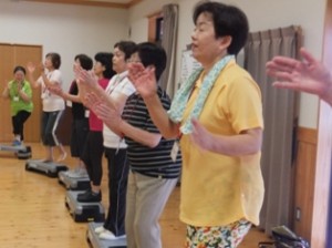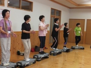 すでにステップ運動の効果があらわれている受講生も。雨天でも室内でできる「ステップ運動」で健康を目指します。