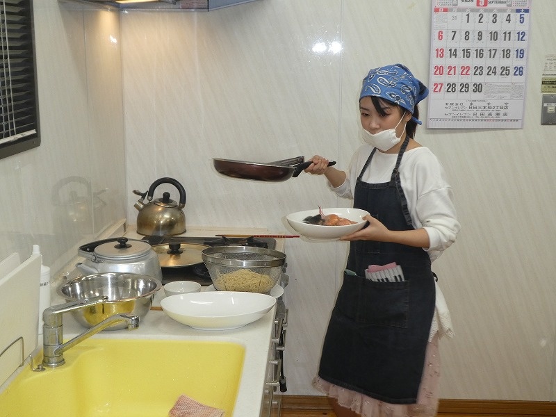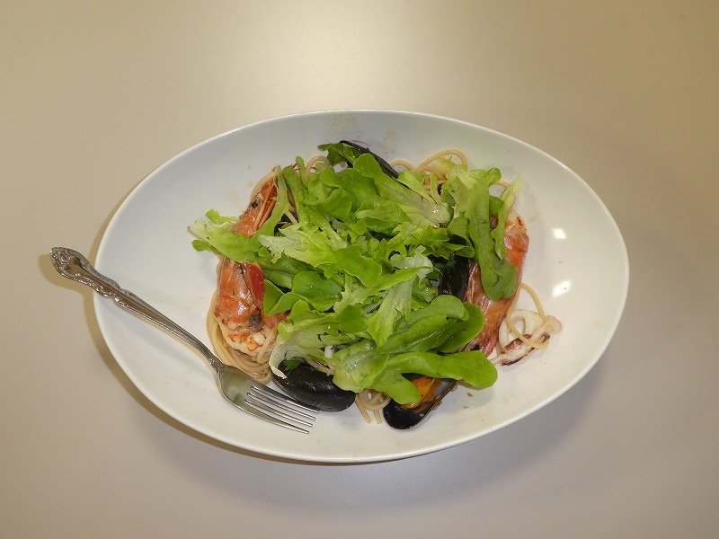 最終的にシーフードパスタの作り方を教わり、受講生の皆さんもそれぞれ挑戦しました。