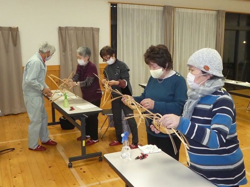 今回も5名の講師の方が指導してくださり、皆さんきれいなかごを作り上げました。