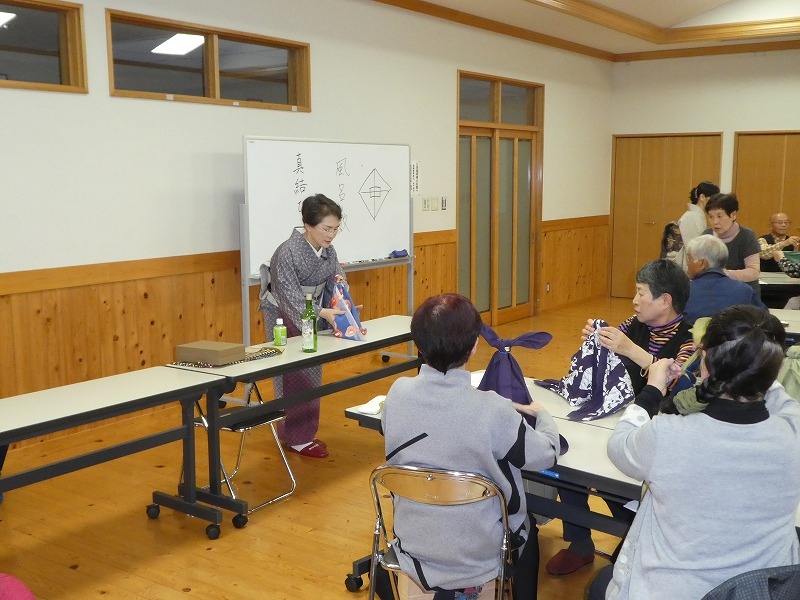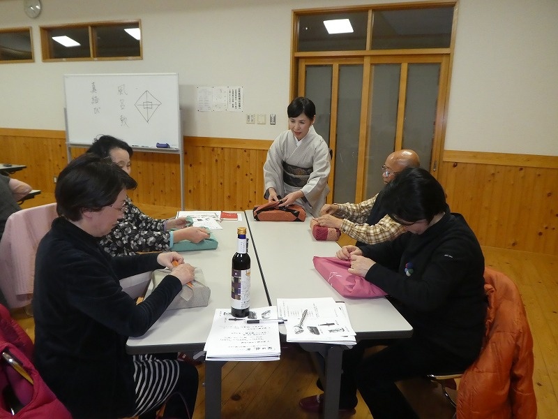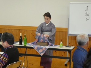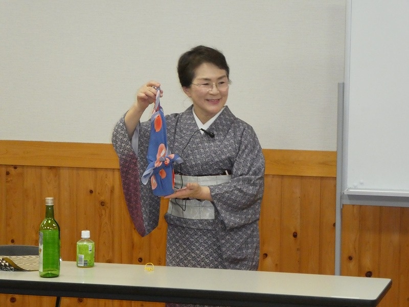 名前の由来をお話していただき、その後、風呂敷の包み方を実際にやってみました。