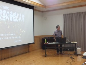 先日、高齢者教室「防災講座」を開催しましたが、6月17日(金)成人セミナーにおいても、「災害サポートユニットチーム大分」の梅山さんを講師に「災害講座」を行いました。成人セミナー会員50名中33名が参加しました。